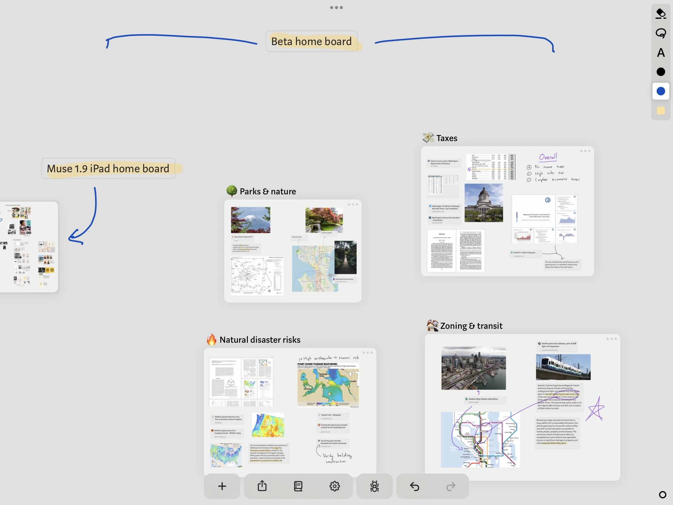 What this means is that, after enabling sync, Muse will also download whatever data you had in the beta. Your beta home board will become your home board, and your home board from Muse 1 will be placed in the inbox. Then you can manually merge the contents together in whatever arrangement you want.